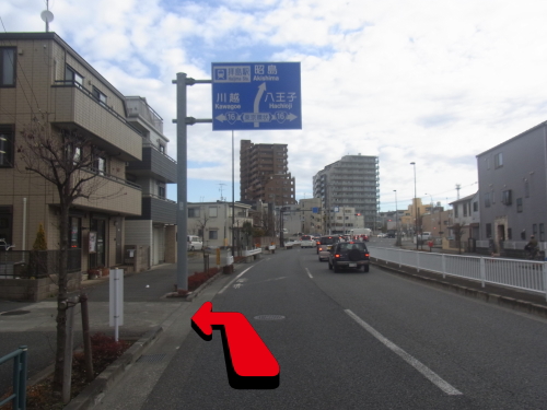 下の写真は「都道7号杉並あきる野線」睦橋・あきる野方面から拝島駅・昭島方面に向かっています。
